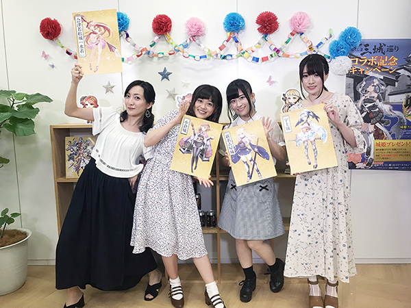 ▲7月29日に「城姫クエスト 極」4周年記念ニコ生にご出演いただいたキャストの皆様。右から久保田梨沙さん、大野柚布子さん、田中貴子さん、松澤千晶さん。